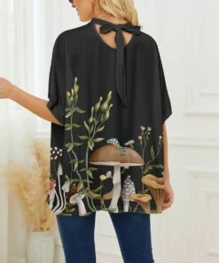 Best reviews of ๐งจ PixieLady Black Still Life Mock Neck Tie-Back Cape-Sleeve Top – Plus ๐คฉ