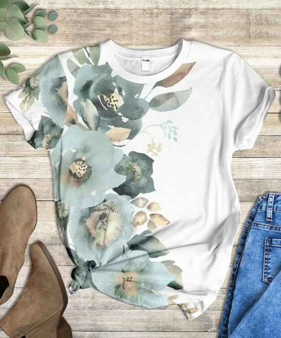 Make your closet blossom with comfort with this floral crewneck top boasting a cool-toned graphic and made from ultrasoft fabric.
